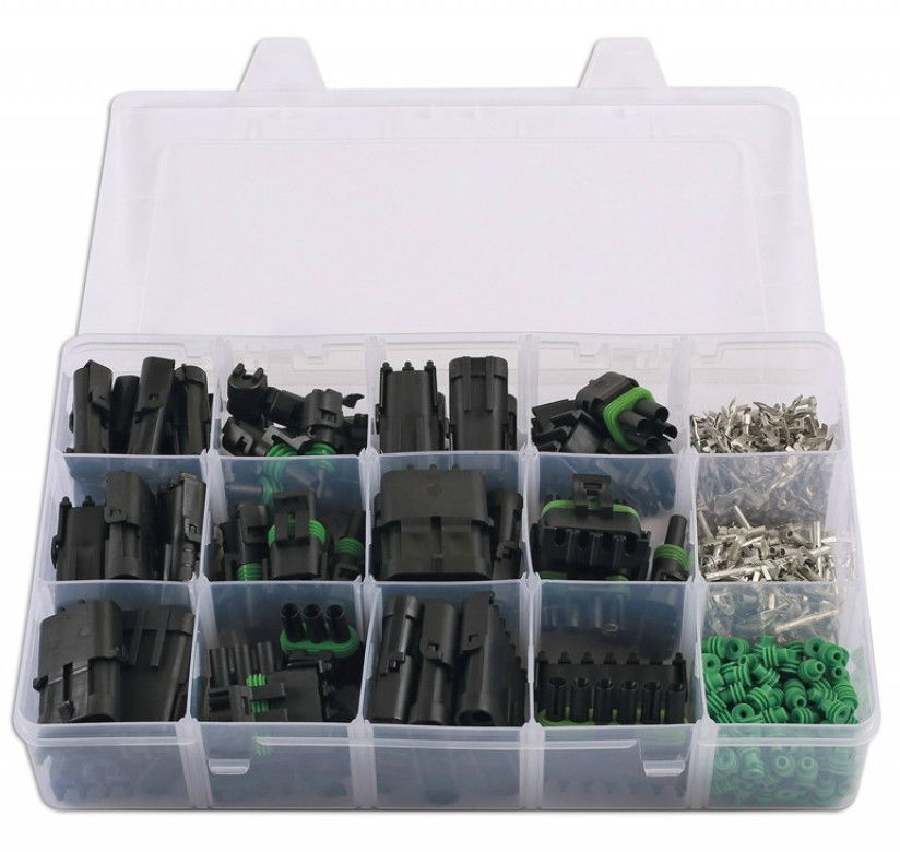 - Delphi vízálló csatlakozó készlet 426 darabos kiszerelésben: tűhegyek, gumitömítések, műanyag "apa-anya" házas csatlakozók.