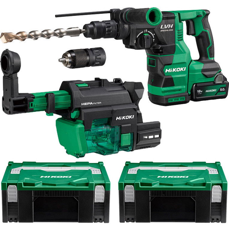 HiKoki DH1826DC-WUZ akkus SDS-plus fúró-vésőkalapács porelszívóval (2 x 5.0 Ah Li-ion akkuval, 2 db Hitbox kofferrel)