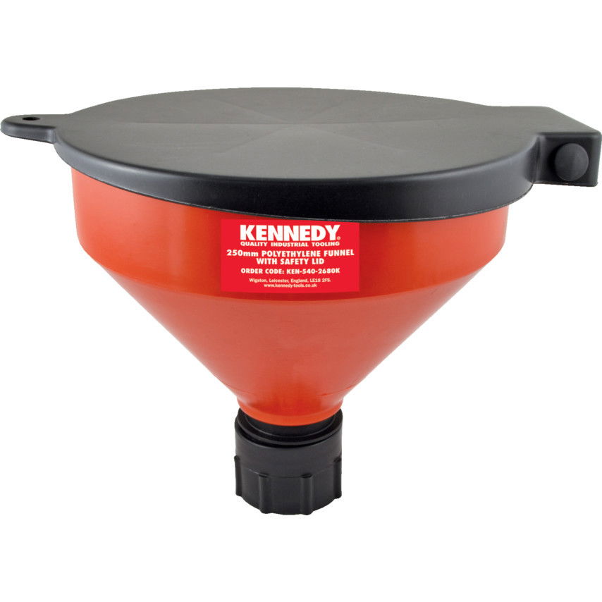 KENNEDY Polietilén tölcsér zárható fedéllel, 253 x 200 mm